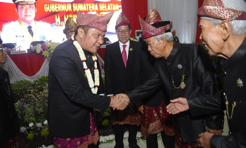 L.LINGGAU | Koranranrakyat.co.id – Gubernur Sumsel Herman Deru mendapat gelar kehormatan dari Lembaga Penasehat Adat Kota Lubuk Linggau sebagai Pengeran Manggala Agung Jagabaya, yang bermakna pemimpin utama pemerintahan dan pelindung masyarakat. Gelar tersebut diberikan bersaman dengan acara Rapat Paripurna Kota Lubuk Linggau dalam rangka Peringatan HUT ke–17 Kota Lubuk Linggau Tahun 2018 di Gedung Kesenian Kota Lubuk Linggau, Rabu (17/10).