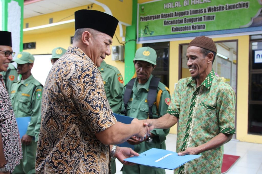 Apresiasi ini disampaikan saat acara halal bihalal dan penyerahan penghargaan kepada anggota Linmas di Kantor Camat Bunguran Timur Kabupaten Natuna menggelar acara Halal Bihalal pasca Hari Raya Idul Fitri 1 Syawal 1440 H, Kamis,(13/06)