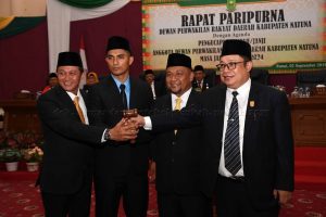 “Pimpinan sementara DPRD Kabupaten Natuna masa jabatan tahun 2019 – 2024 dari Partai Politik yang memperoleh kursi terbanyak pertama dan kedua, dimana PAN memperoleh sebanyak 3 kursi disusul Partai Golkar 3 kursi. Maka Pimpinan sementara sebaga Ketua adalah Andes Putra, S.pd dari PAN, Wakil Ketua Sementara Eri Marka dari Partai Golkar. ” jelas Plt. Sekretaris DPRD Kabupaten Natuna, Hendra Kusuma.
