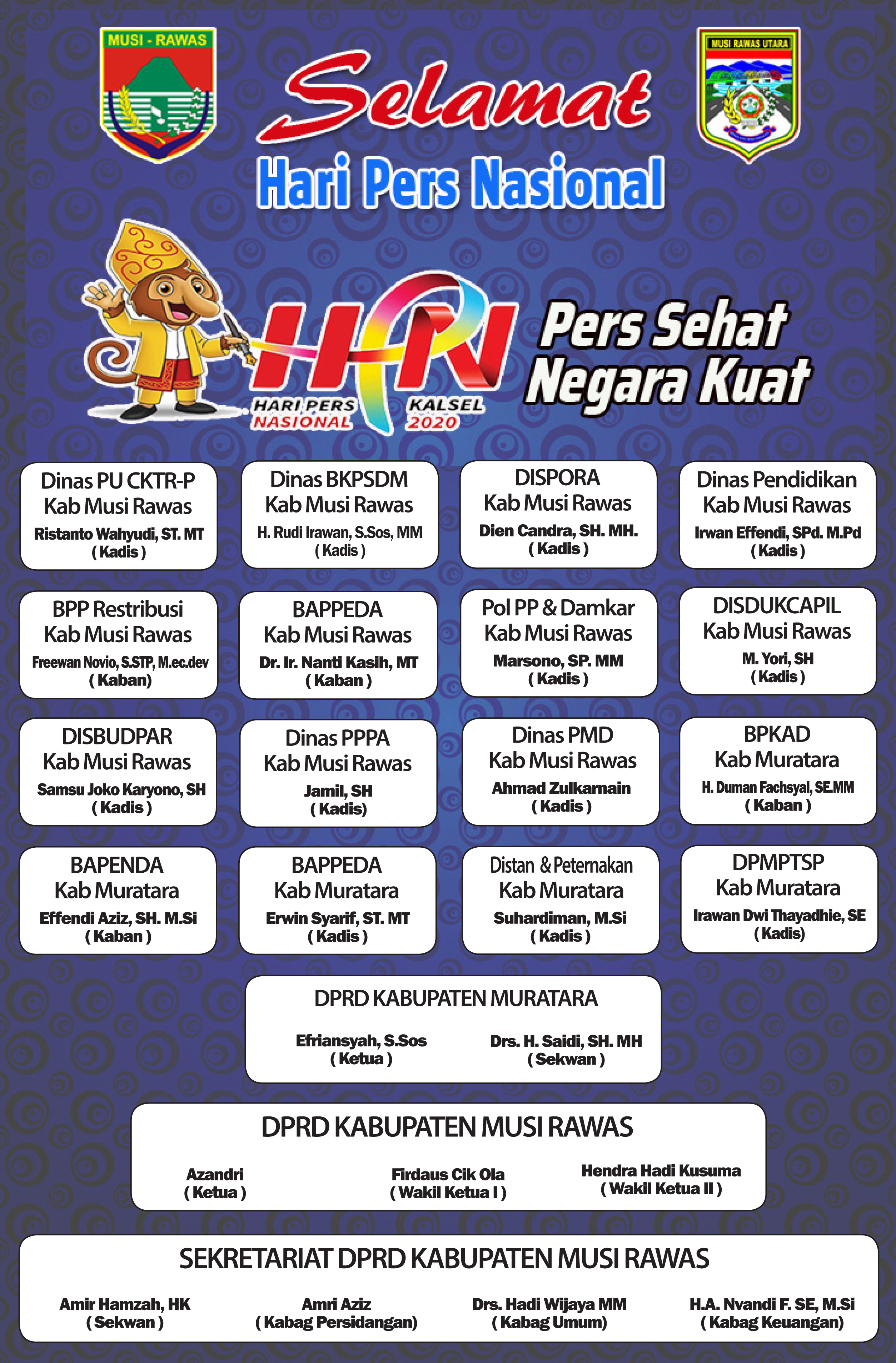 Musi Rawas Iklan HPN 2020 9 Februari 2020 0 DIbaca: 1,909 Facebook Twitter WhatsApp Print Email Continue Reading Previous Sekda Musi Rawas Pantau Lokasi BanjirNext Hasil Evaluasi SAKIP 2019, Pemkab Mura Raih Nilai B Berita Lainnya Musi Rawas Jelang Perebutan Kursi Ketua DPC PKB Musi Rawas, Nama Zulfikar Mencuat 29 April 2026 Musi Rawas Sudah P-21, Kasus Penganiayaan Istri Ketua SMSI Mura Belum Juga Dilimpahkan ke Kejaksaan 28 April 2026 Musi Rawas Bupati Hj. Ratna Paparkan Sejumlah Prestasi Musi Rawas di Usia 83 Tahun di Depan Gubernur 21 April 2026 Tinggalkan BalasanAnda harus masuk untuk berkomentar.