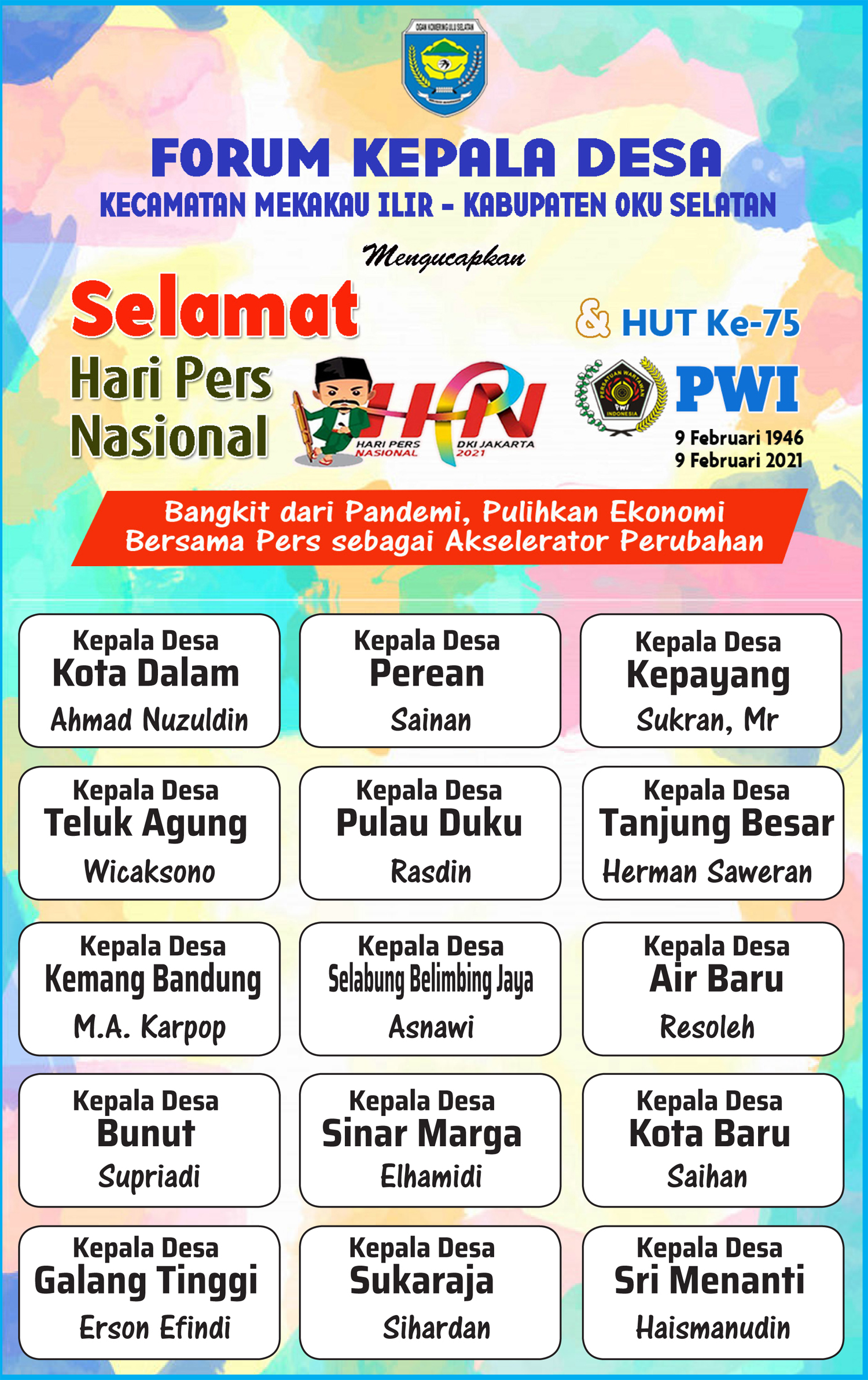 Uncategorized Iklan HPN Forum Kades Mekakau Ilir – OKUS 7 Februari 2021 0 DIbaca: 718 Facebook Twitter WhatsApp Print Email Continue Reading Previous Iklan HPN ZulfakarNext Iklan HPN Asep Sudarno, Kadis Pertanian OKUS Berita Lainnya Banyuasin Berita Utama Uncategorized Herman Deru : Prosedur dan Kolaborasi dalam Pembangunan 18 Ruas Jalan Banyuasin Harus Dijalankan 15 April 2026 Uncategorized Sinergi Pemerintah dan Ulama, Bupati Toha Hadiri Haflah Akhirussanah Ponpes Al-Hikmah 12 April 2026 Uncategorized Gubernur Herman Deru Soroti Keberhasilan Pembangunan dan Tantangan ke Depan 2 April 2026 Tinggalkan BalasanAnda harus masuk untuk berkomentar.