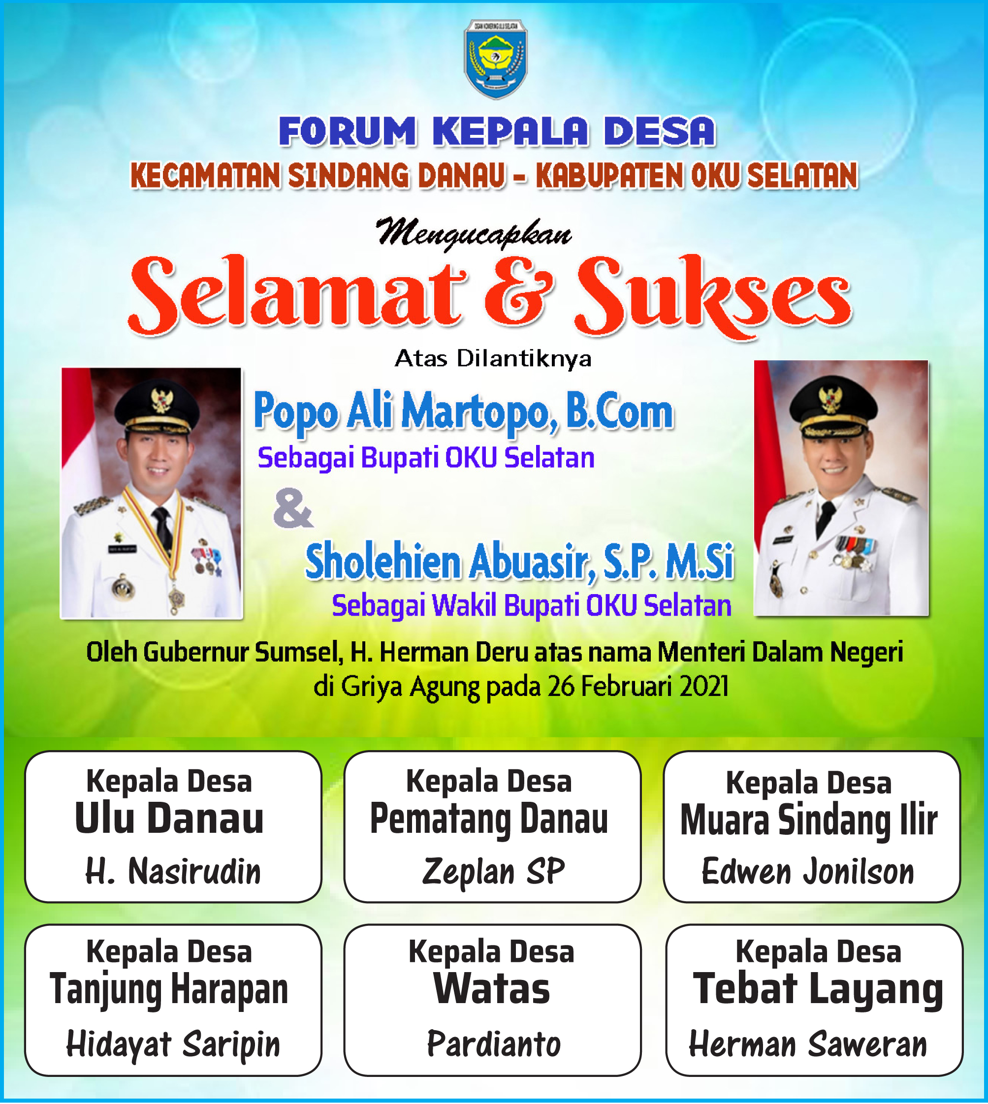 Advertorial Iklan Pelantikan Bupati OKUS Selatan dari Forum Kades Kecamatan Sindang Danau 26 Februari 2021 0 DIbaca: 1,414 Facebook Twitter WhatsApp Print Email Continue Reading Previous Iklan Ucapan Pelantikan Bupati OKU Selatan dari Forum Kades Mekakau IlirNext Iklan Ucapan Pelantikan Bupati OKUS dari Camat Muaradua Berita Lainnya Advertorial Berita Utama Wonosobo Libur Lebaran, BPBD Wonosobo Imbau Pemudik dan Wisatawan Tetap Waspada 14 Maret 2026 Advertorial Berita Utama Wonosobo Jelang Arus Mudik Lebaran, BPBD Wonosobo Pastikan Kesiapsiagaan Bencana 14 Maret 2026 Advertorial Berita Utama Wonosobo Perkuat Komitmen Keterbukaan Informasi Publik, Pemkab Wonosobo Optimalkan Aplikasi SOBOPEDIA 27 Februari 2026 Tinggalkan BalasanAnda harus masuk untuk berkomentar.
