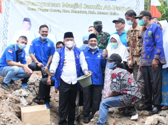 MUARA ENIM | Koranrakyat.co.id – Ketua DPD Partai Demokrat Sumsel yang Bupati Lahat, Cik Ujang SH melakukan peletakan Bartu Pertama Pembangunan Masjid Jamik At-Taqwa, Jumat (28/01/2022) di Desa Pagardewa Kecamatan Benakat Kabupaten Muara Enim Provinsi Sumatera Selatan.
