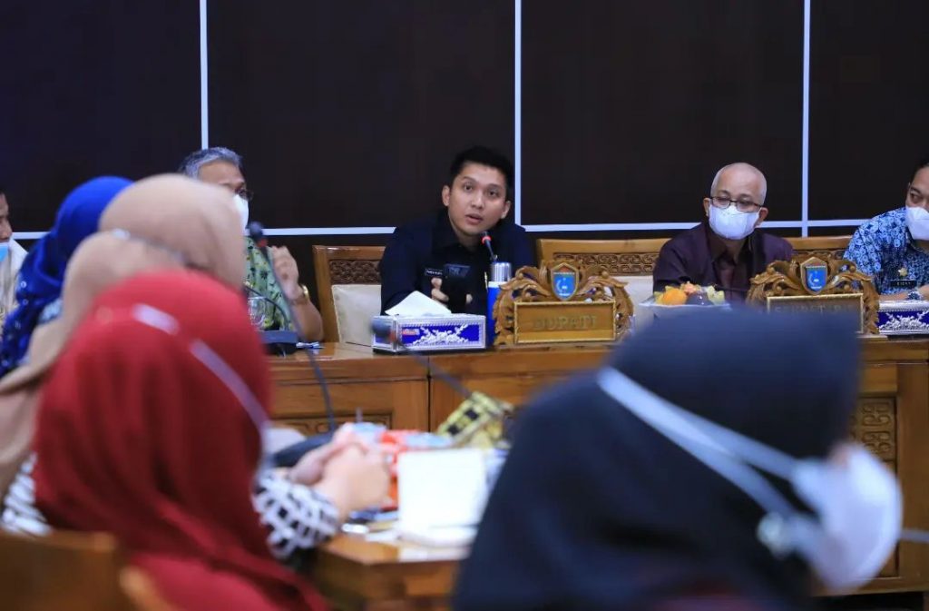 Bupti Ogan Ilir Panca Wijaya saat memimpin rapat sosialisasi e-absensi bersama sejumlah pejabat dan kepala OPD. (f/ist)
