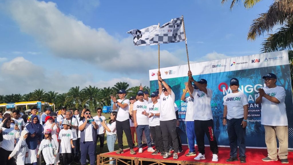 TANJUNG SENAI Koran Rakyat co.id – SEKRETARIS Daerah (Sekda) Kabupaten Ogan Ilir (OI), H Muhsin Abdullah, ST, MT, MM, Minggu pagi tanggal 5 Maret 2023, melepas peserta Jalan Sehat Bersama BUMN di Kawasan Tanjung Senai, Indralaya.