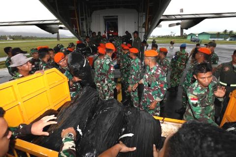 Kepala BNPB beserta rombongan tim BASARNAS tiba di Ranai setelah menempuh penerbangan selama kurang lebih 2 jam 40 menit dari Lanud Halim Perdanakusuma di Jakarta menggunakan pesawat Hercules C-130 TNI AU.