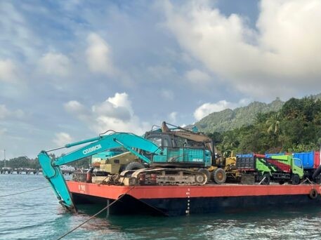 “Alat berat ini dikirim dari pelabuhan Tanjung Bayan Ranai dengan tongkang tadi pagi, perkiraan kita, sampai Serasan besok pagi, karena kecepatan tongkang itu hanya 5 mill/ jam,” ujar Agus Supardi, saar di rtemui Rabu (8/3/2023) sebelum bertoak ke Serasan