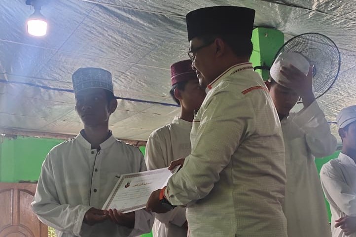 Husnul Anam yang juga Ketua DPC PKS OI, pada kesempatan tersebut didaulat memberikan sertifikat kepada santri yang ikut wisuda tahfiz Al-Qur’an, sekaligus juga memimpin doa selamat.