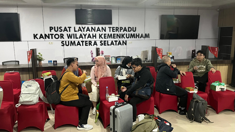 PALEMBANG | Koranrakyat.co.id – Kantor Wilayah Kementerian Hukum Sumatera Selatan menerima kedatangan peserta Mudik Bersama Kementerian Koordinator Bidang Hukum, Hak Asasi Manusia, Imigrasi, dan Pemasyarakatan, Kementerian Hukum, Kementerian Hak Asasi Manusia, serta Kementerian Imigrasi dan Pemasyarakatan di bumi Sriwijaya, Sabtu (22/3) dini hari.