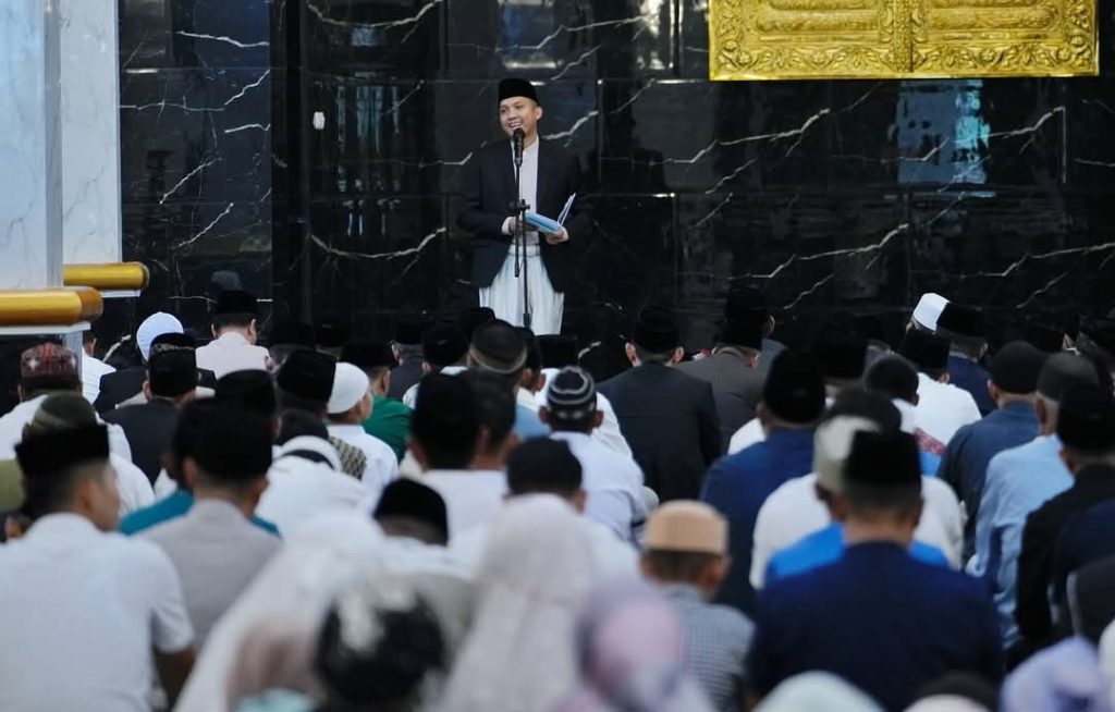 INDRALAYA|KoranRakyat co. id – BERBEDA dengan hari raya tahun sebelumnya, pada hari raya Idul Fitri 1 Syawal 1446 H ini, Bupati Ogan Ilir (OI), Panca Wijaya Akbar dan Wabup H Ardani, melaksanakan sholat id “bareng” bertempat di Masjid Agung An-Nur di Komplek Perkantoran Terpadu (KPT) Tanjung Senai, Indralaya.