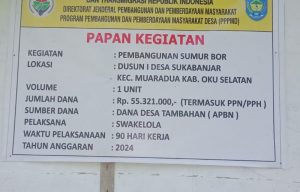 OKU SELATAN | Koranrakyat.co.id – Proyek pembangunan sumur bor di Desa Sukabanjar Kecamatan Muaradua, Kabupaten OKU Selatan, kini jadi sorotan masyarakat. Selain belum bisa dimanfaatkan, pengerjaan proyek swakelola yang semestinya melibatkan masyarakat setempat, justru disebut-sebut diborongkan kepada orang luar yang bukan warga setempat.