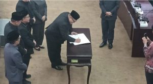 Rapat paripurna diakhiri dengan penandatanganan berita acara persetujuan bersama antara Ketua DPRD Kota Bekasi dan Wali Kota Bekasi, yang menandai sahnya Raperda Pertanggungjawaban Pelaksanaan APBD Tahun Anggaran 2024. (Adv)
