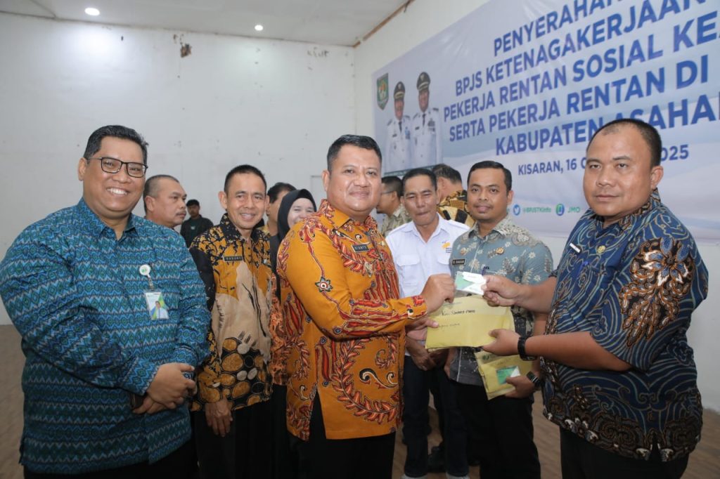 ASAHAN | Koranrakyat.co.id — Pemerintah Kabupaten Asahan bersama BPJS Ketenagakerjaan Cabang Asahan menyerahkan secara simbolis 4.900 kartu BPJS Ketenagakerjaan kepada pekerja rentan sosial keagamaan dan pekerja informal lainnya(, Kamis (16/10/2025).