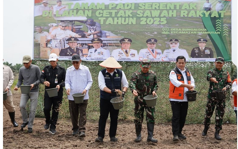 Kegiatan tersebut turut dihadiri Bupati Banyuasin Askolani, Danrem 044/Gapo Brigjen TNI Khabib Mahfud, serta jajaran Kementerian Pertanian Republik Indonesia. Tanam padi serentak ini menjadi momentum penting dalam memperkuat komitmen Sumsel sebagai salah satu daerah penghasil pangan utama nasional.