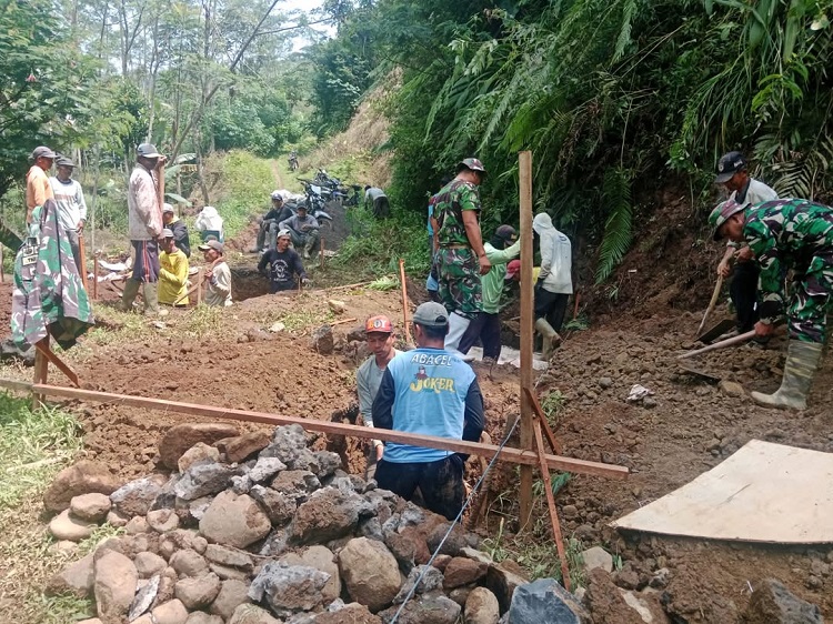 Warga Pasuruhan, Watumalang Kompak Bantu TNI Bangun Jembatan Garuda Wonosobo