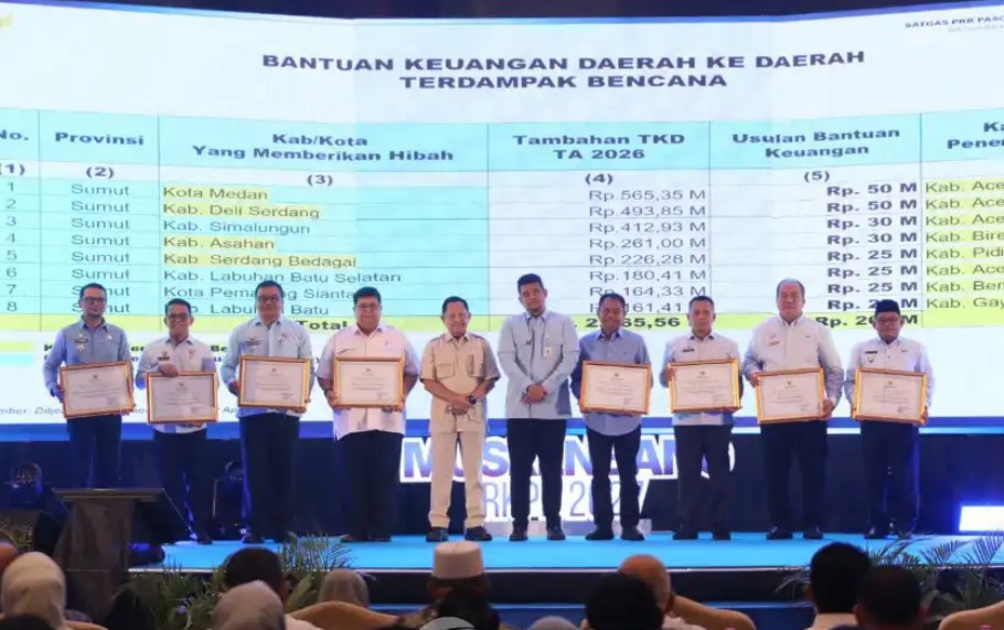 Penghargaan tersebut diberikan atas kontribusi dan partisipasi aktif Pemerintah Kabupaten Asahan dalam memberikan bantuan keuangan kepada Pemerintah Kabupaten Bireuen, Provinsi Aceh, guna mendukung penanggulangan serta pemulihan pascabencana alam tahun 2026.