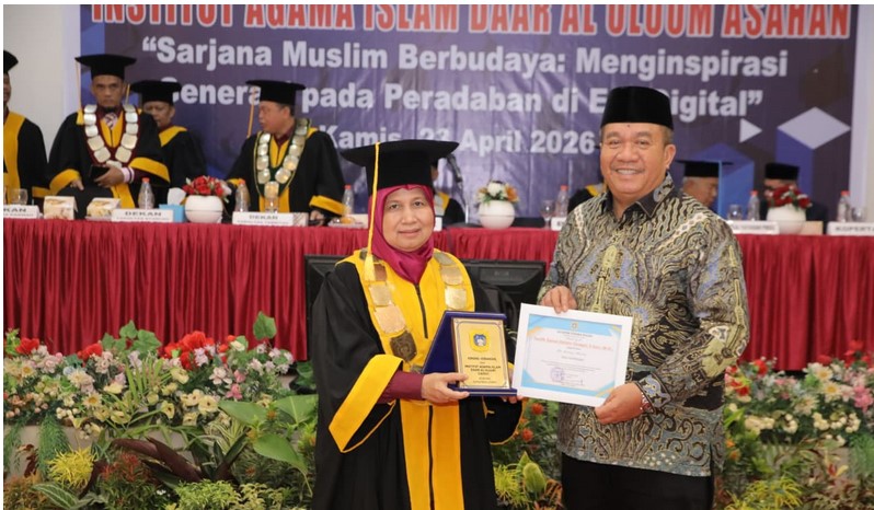 Pada kesempatan tersebut, Rektor IAIDU Asahan juga menyerahkan piagam penghargaan kepada Bupati Asahan sebagai bentuk apresiasi atas perhatian dan dukungan terhadap pendidikan di Kabupaten Asahan.